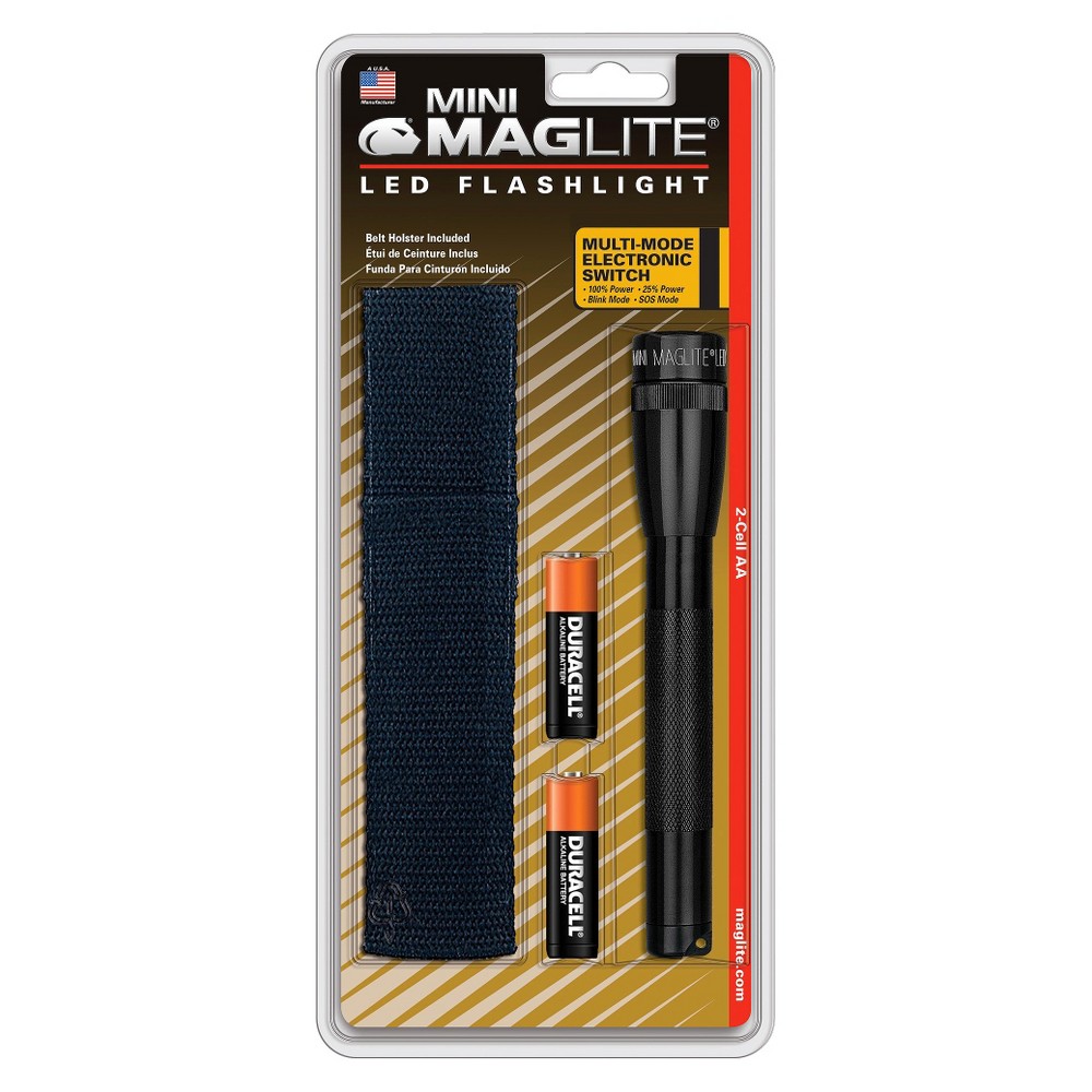 Maglite mini 97 lumens black led flashlight/holster combo pack aa battery. Maglite pro 332 lumens black led mini flashlight aa battery. Built tough enough to last a lifetime, its durability and patented features are now available with the ne. Sp2201g mini maglite led flashlight black & safety pack red. Sp2210h mini maglite 2x aa led flashlight silver.